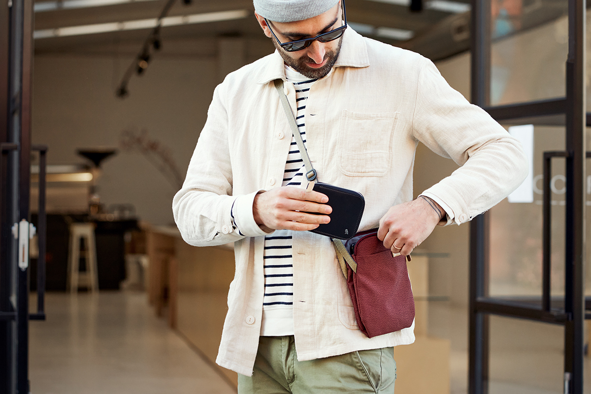 即使裝滿日常必需品,City Pouch 仍保持纖薄外型,可輕鬆藏於外套內,不顯臃腫。