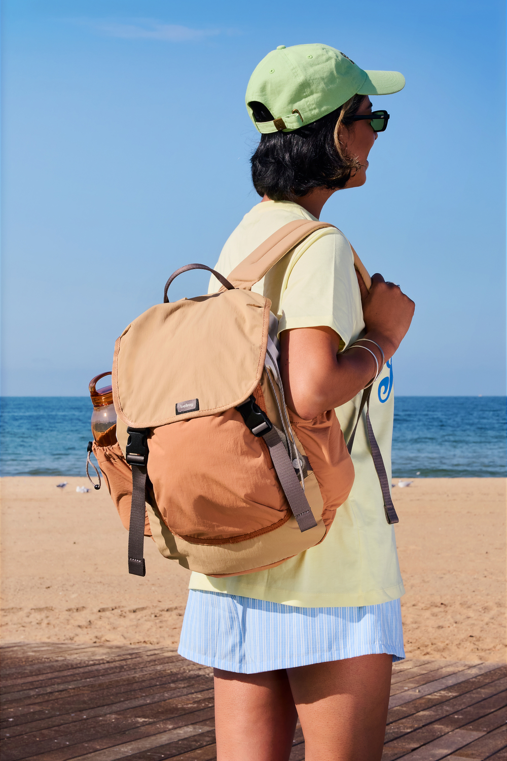 Cinch 系列的靈感來自經典日用後背包,Bellroy 透過抽繩、翻蓋與復古色調,做出一種像「陪你走過很多日常」的熟悉感:外觀簡單、細節卻很講究,讓收納自然有序,背起來也更輕鬆。
