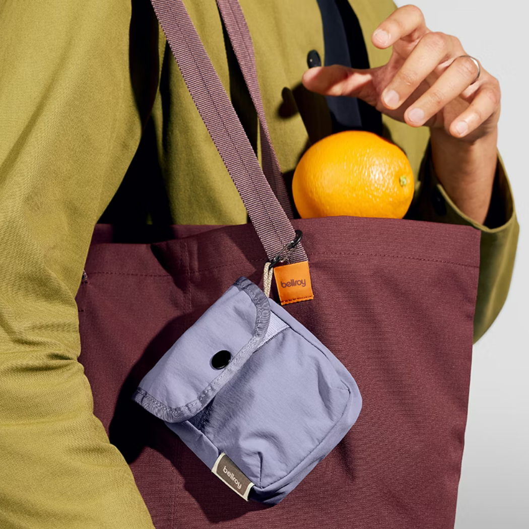 它的精髓在於 登山扣掛載——你可以扣在後背包肩帶、托特包提把、腰帶或行李拉鍊頭上,把常用的小物「掛在你最順手的位置」。包體採輕盈垂感尼龍,柔軟可壓縮,塞進包內不占空間;需要時再掛出來,立刻提升整理效率與個性。