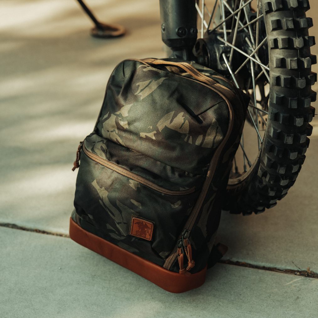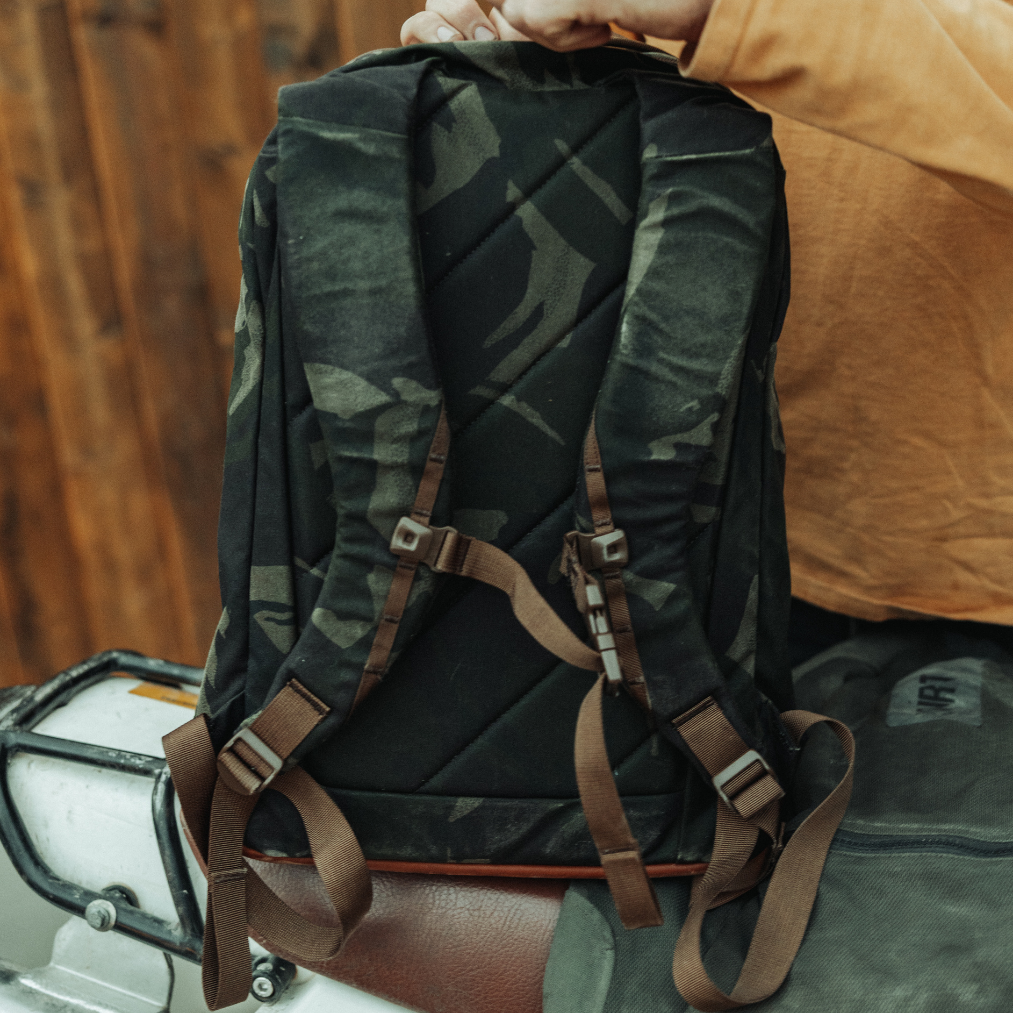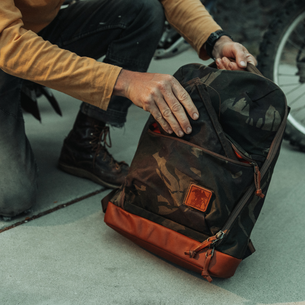 - 打蠟帆布 - 迷彩 - 皮革底部和貼片