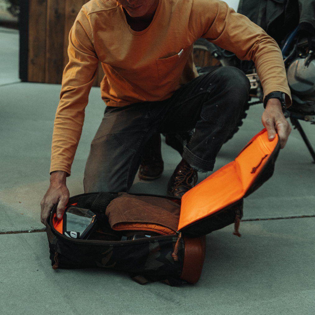 標誌性的後背包經過重新設計,採用客製化的限量版打蠟帆布外殼製成。