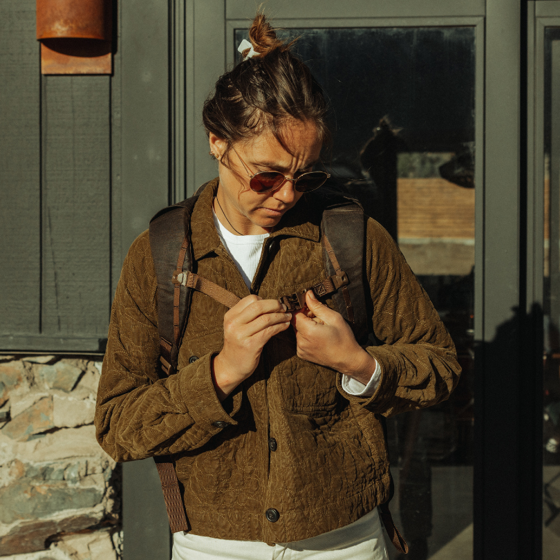 採用 P400 Wax C4X 蠟棉帆布,具有優異的耐磨性與防水性,並隨著使用時間展現獨特的光澤與質感。