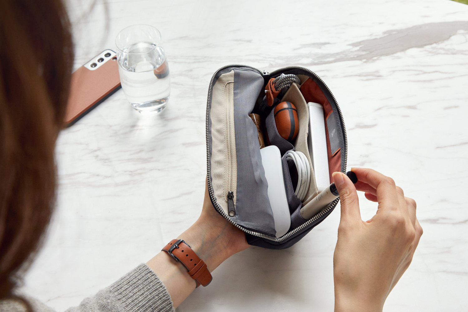 內部彈性固定環設計,讓電線、耳機不再纏繞打結,也能穩妥放置 Apple Pencil、觸控筆等配件。