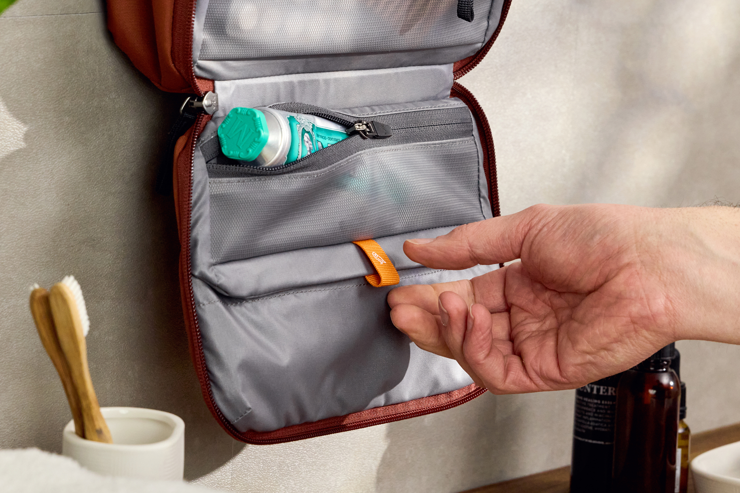 「我們希望這款盥洗包能在旅途中輕鬆掛起、打開,讓取用變得毫不費力。從細節到材質,我們都追求便利與清潔的最佳平衡。」