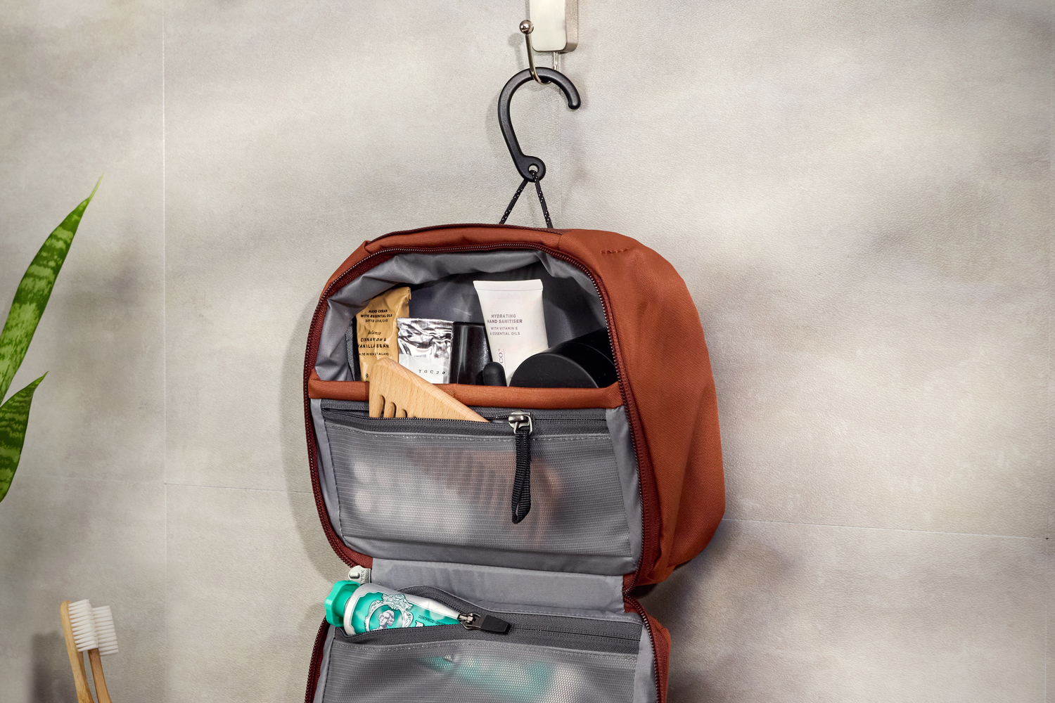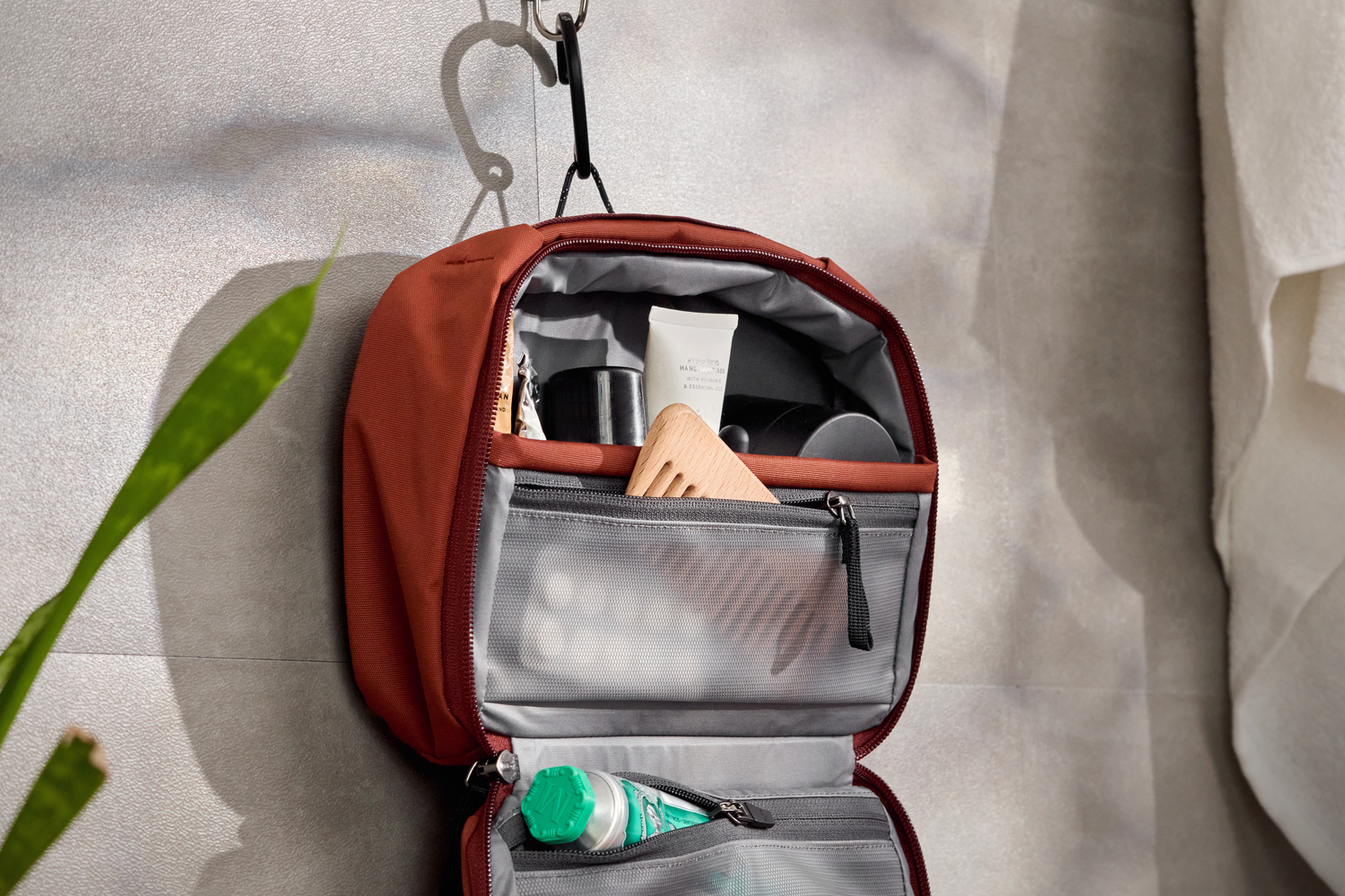 Bellroy Hanging Toiletry Kit 是一款 結合靈活設計與分層收納 的旅行盥洗包。可直立放置、平放展開或輕鬆懸掛,讓你在不同環境都能迅速整理與取用。採用再生尼龍與回收漁網等環保材質,內襯防水且易清潔,容量適中,無論商務出差或度假旅行,皆能保持整齊有序。