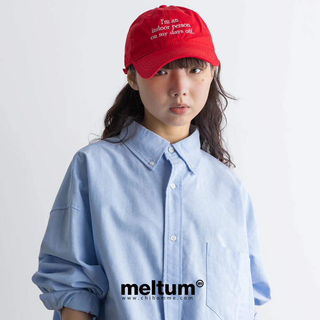 把「一句碎念」變成穿搭記號。Indoor person Cap 不需要複雜設計,靠刺繡字樣就能讓造型有表情——懶得社交、只想待在室內的那種,剛好很誠實。