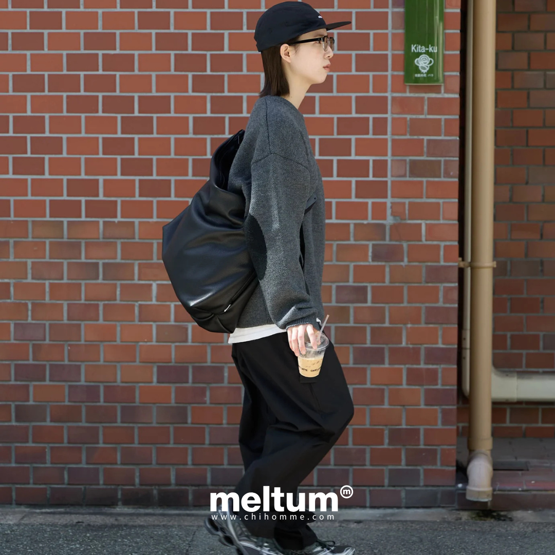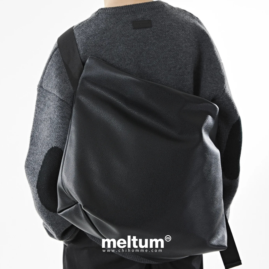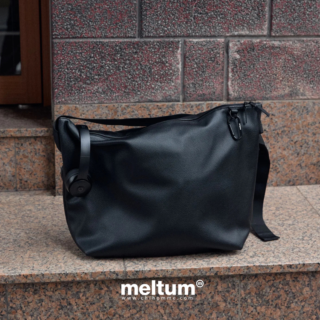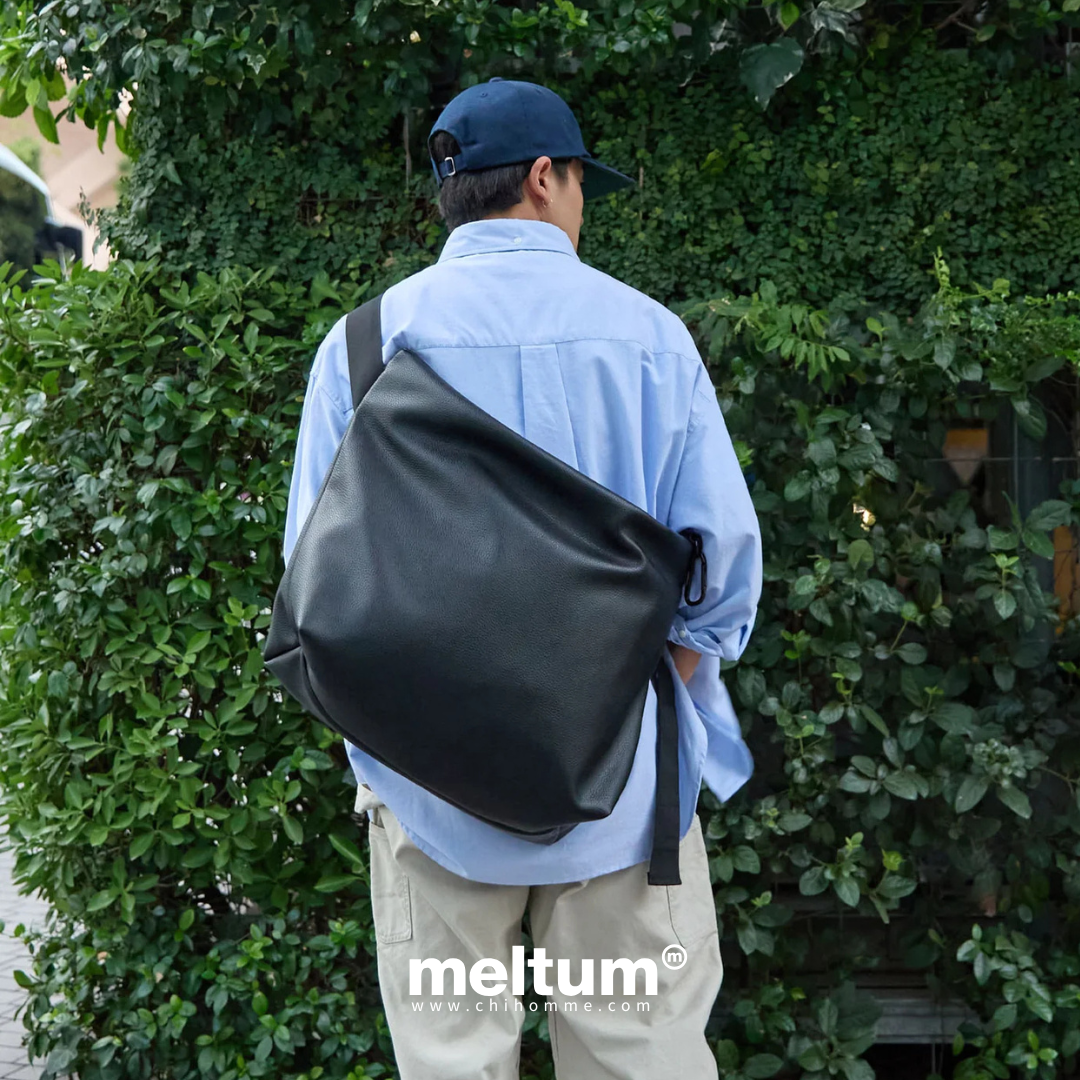 meltum 人氣熱銷款 NYLON MESSENGER BAG 迎來全新升級——以更具質感的 荔枝紋合成皮革(シンセティックレザー) 重新打造,維持俐落簡約的郵差包輪廓,同時把「耐用、好收納、好背」做到更完整。