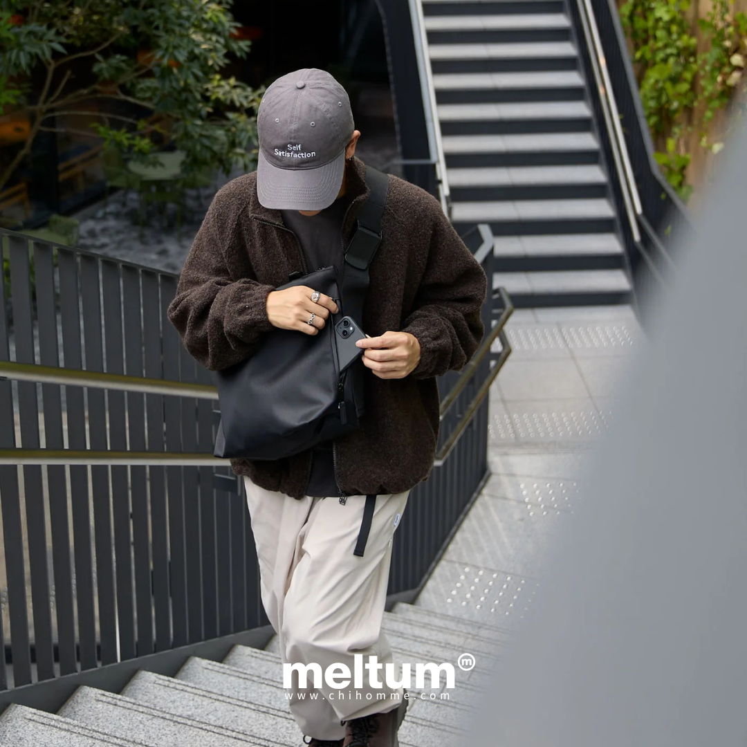 meltum 將導演的「ぼやき(碎念)」化成刺繡字樣,落在帽身中央,簡單卻很有份量。炭灰色(Charcoal)比黑色更有層次,耐看、耐髒,也更容易融入日常穿搭。
