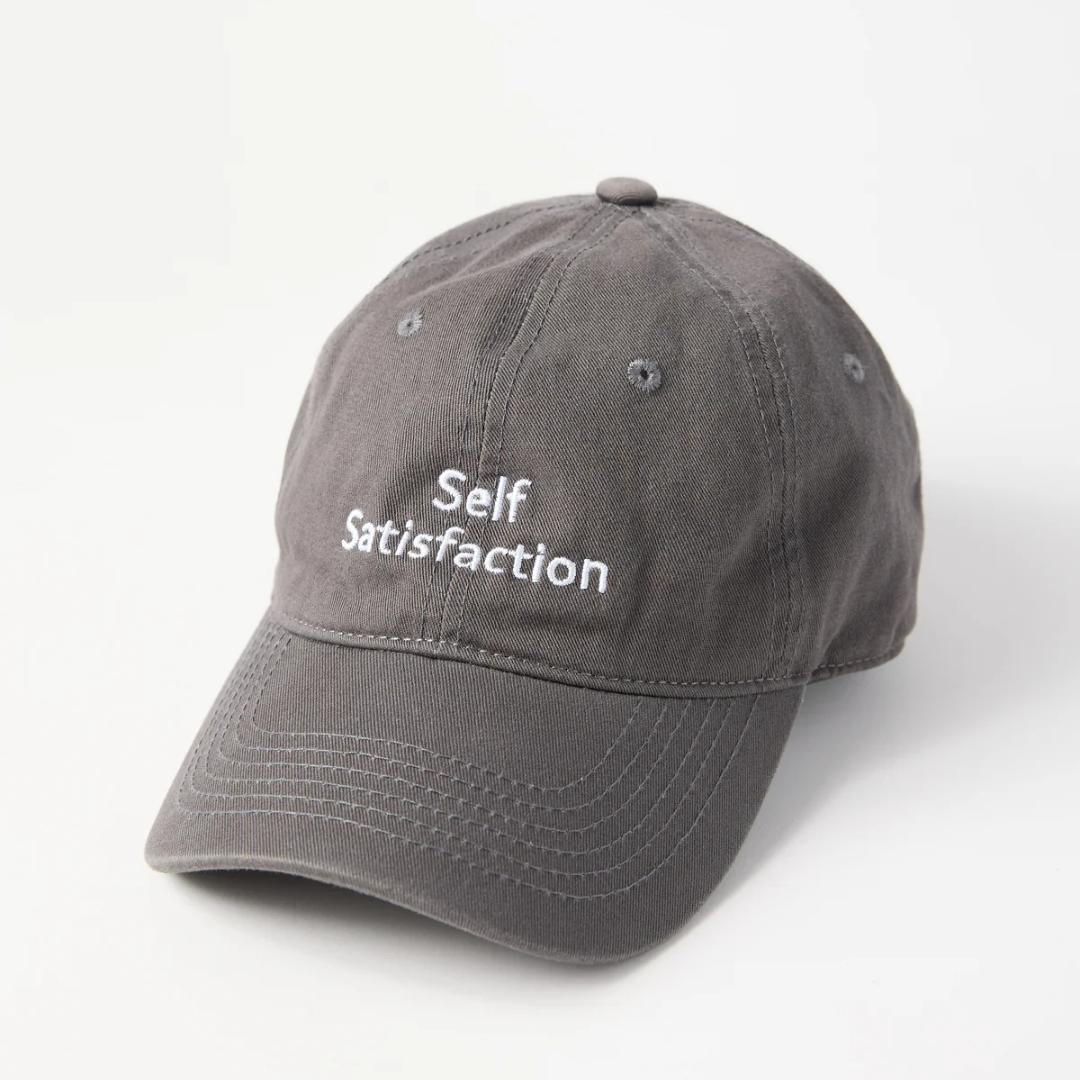 把「一句碎念」變成穿搭記號。Self Satisfaction Cap 用最簡單的刺繡與配色,留下一句很誠實的話——不需要外界認可,自己覺得對就好。這頂帽子不搶戲,但它會讓整體造型更有立場。