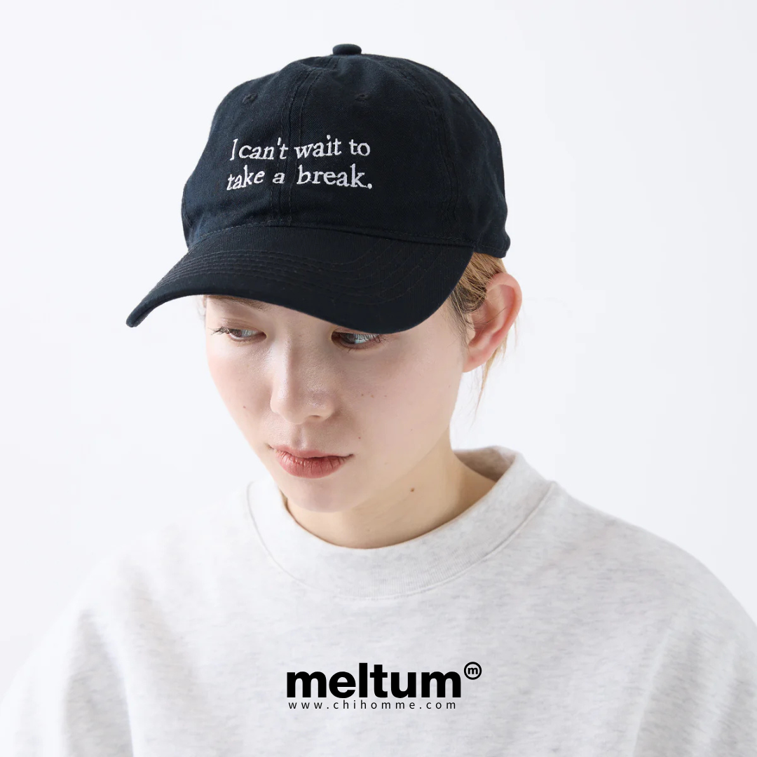 meltum 把導演的「ぼやき(碎念)」刺繡在帽子上——直白、好笑、又很真實。黑色帽身乾淨俐落,搭配字樣刺繡,穿搭不需要用力,一戴就有重點。