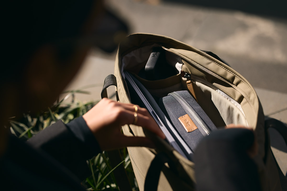 前袋就像「包中包」:個人物品快取、工作裝備整齊收好,工作日更順手。